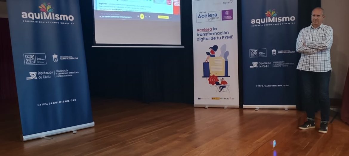Esta tarde los comerciantes de Jimena de la Frontera han conocido de primera mano todas las ventajas de integrarse en el Marketplace ‘AquíMismo’ creado por la Mancomunidad de Municipios del Campo de Gibraltar y financiado por la Diputación de Cádiz. Y lo han hecho durante la jornada informativa que hemos realizado en colaboración con la institución supramunicipal en el centro cultural Reina Sofía.